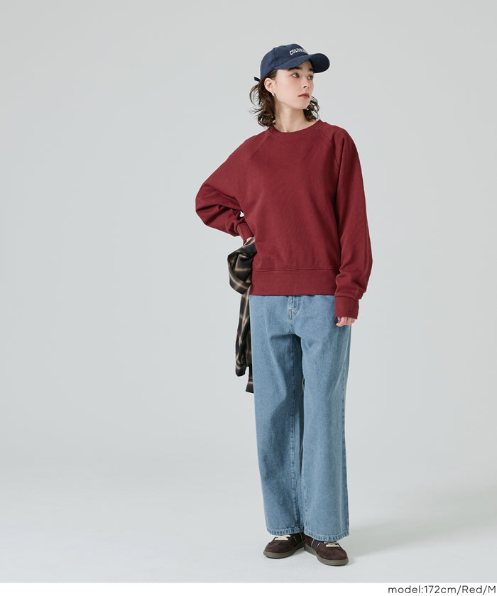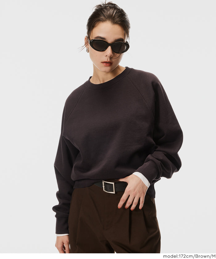 [Heavy Cotton] Cropped Raglan Sleeve Solid Color Long Sleeve Sweatshirt