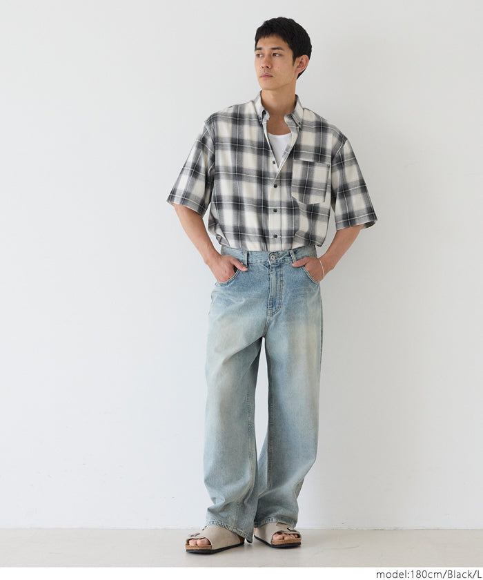 男裝格紋短袖襯衫