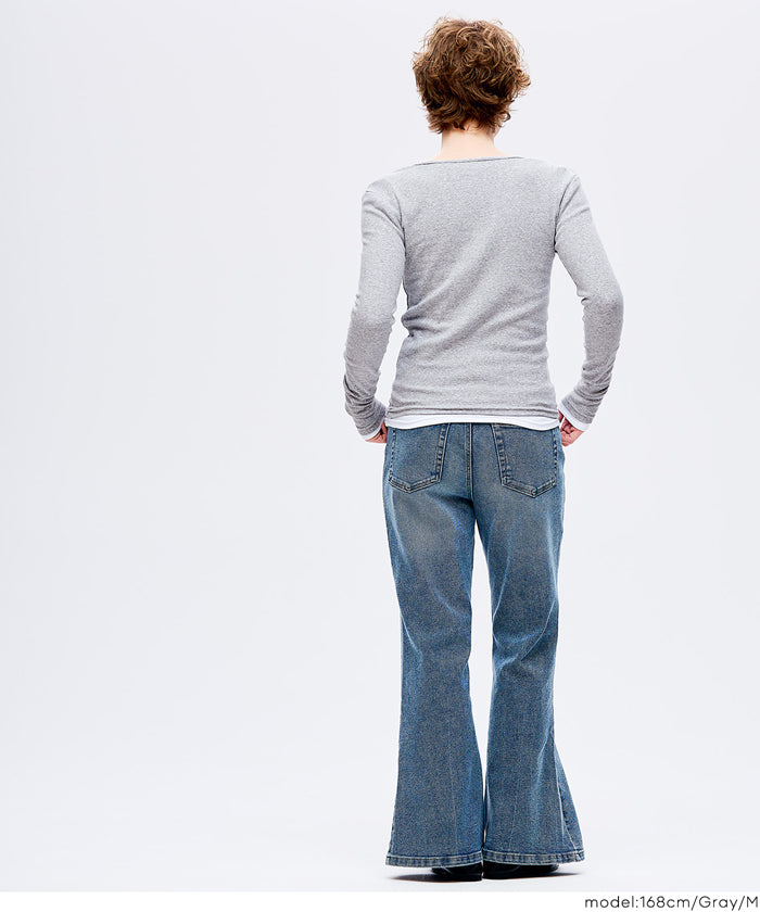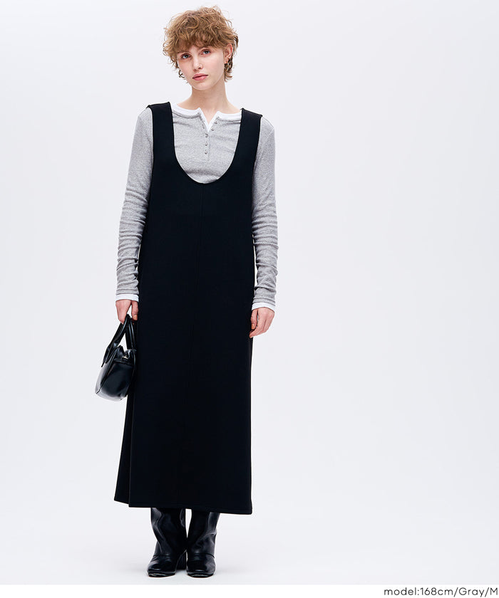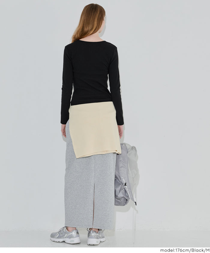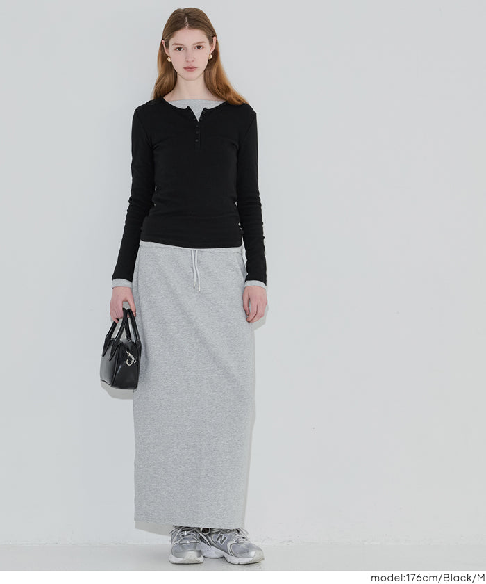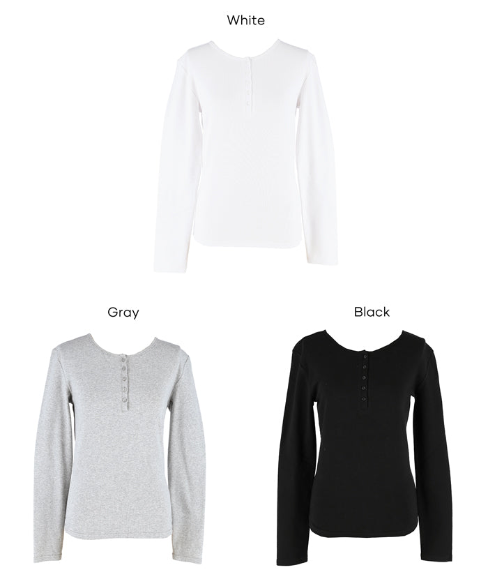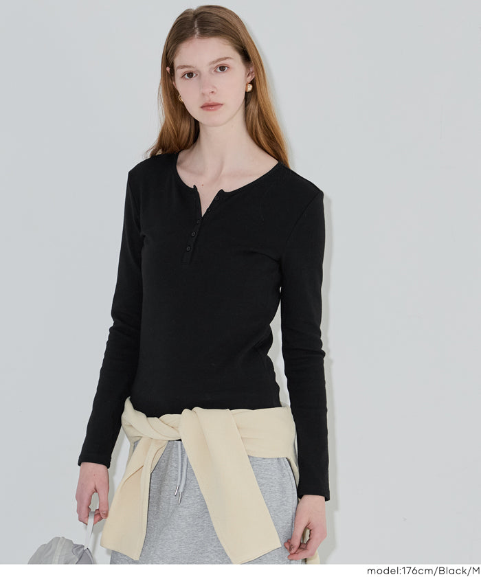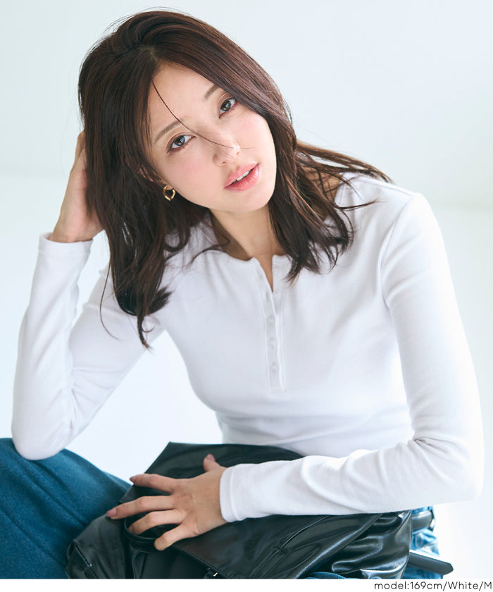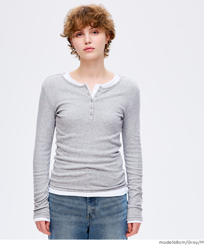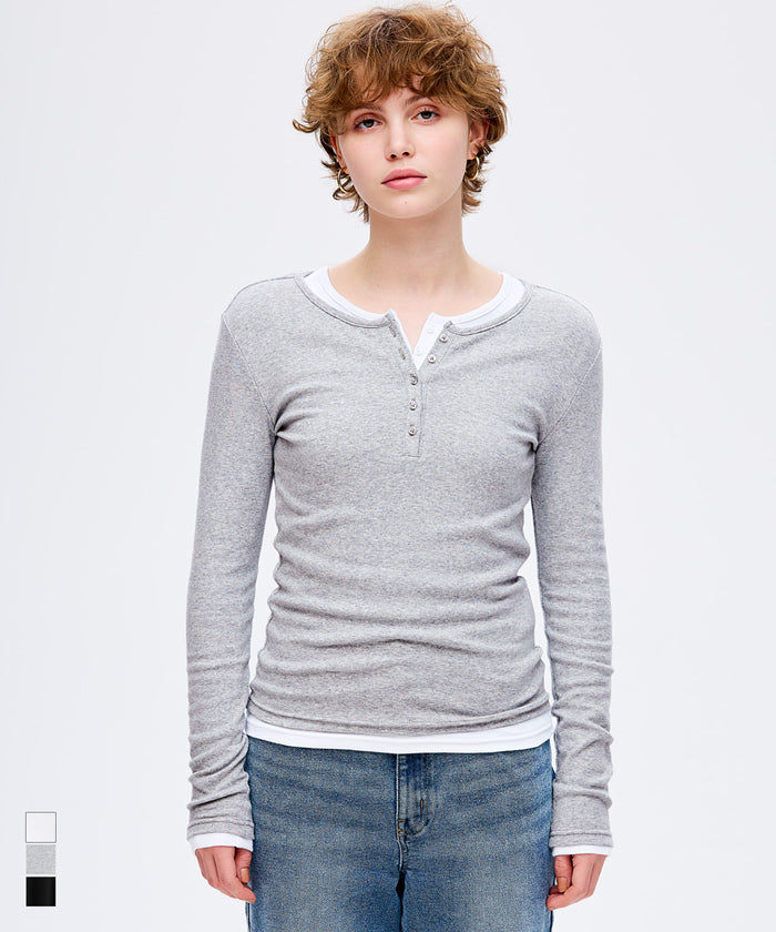 Simple double-layer Henley collar design long-sleeved top