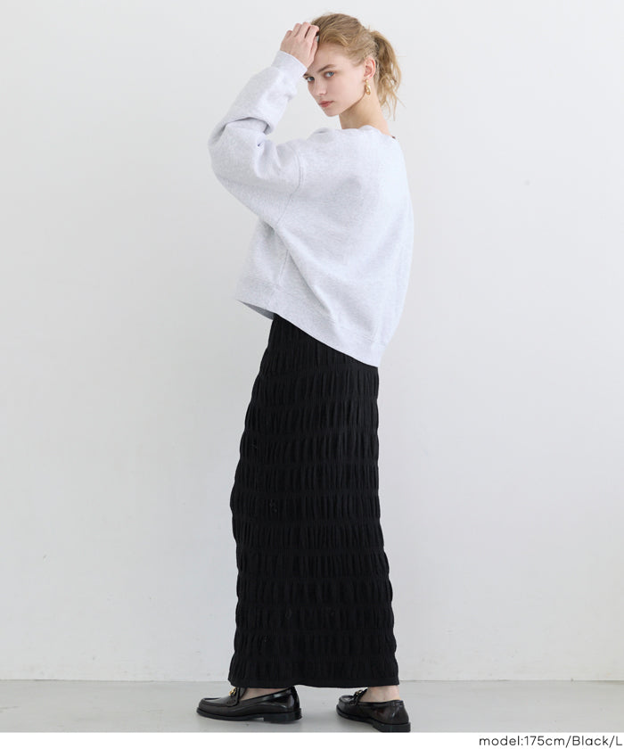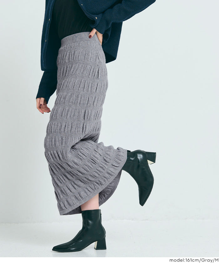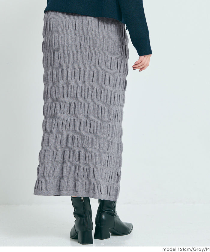 Irregularly gathered elastic straight skirt