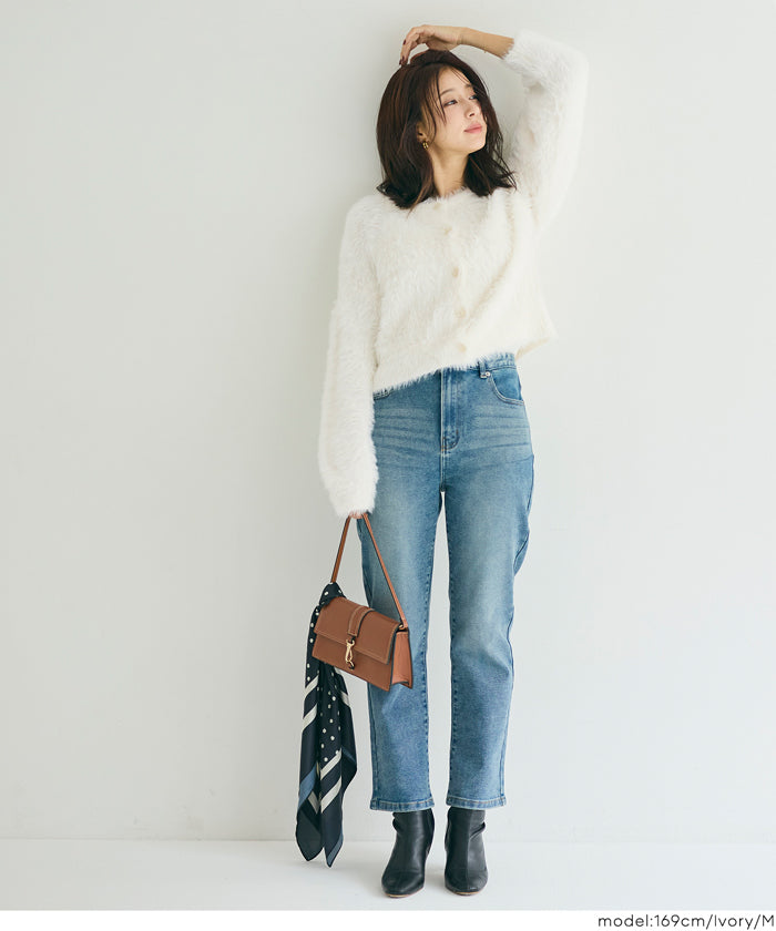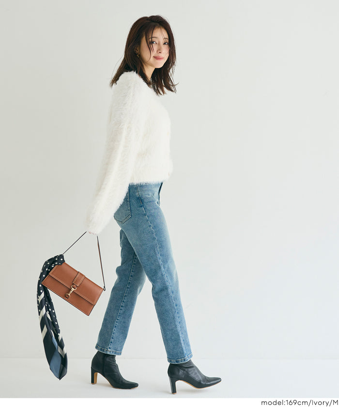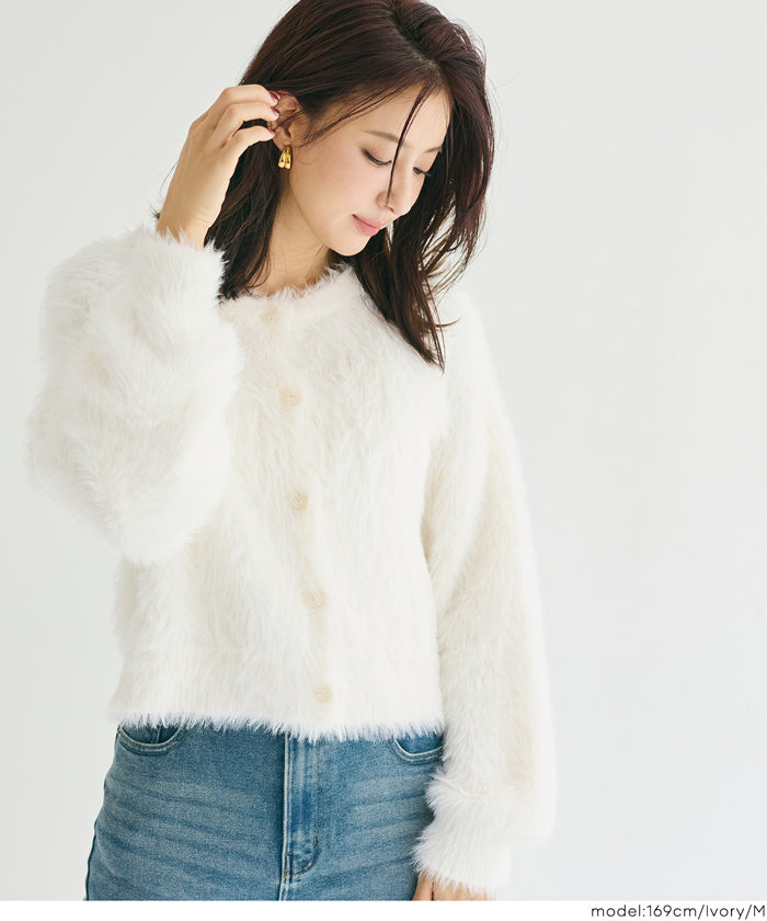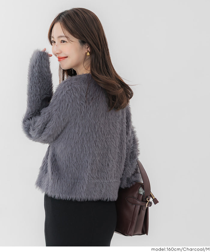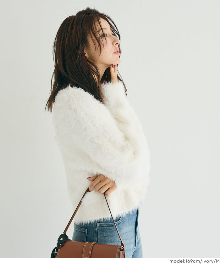 Soft and fluffy round neck long-sleeved knit sweater