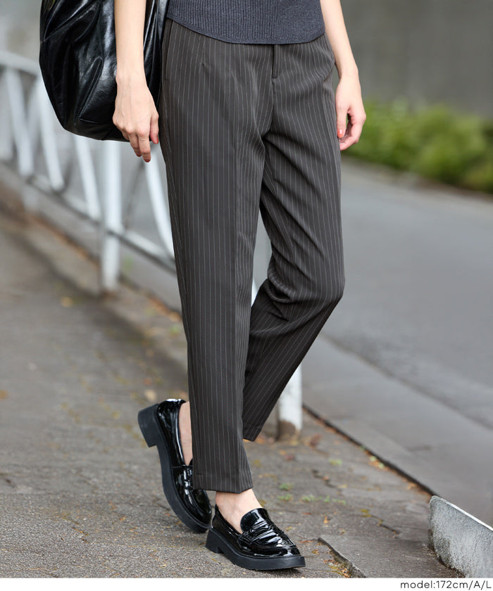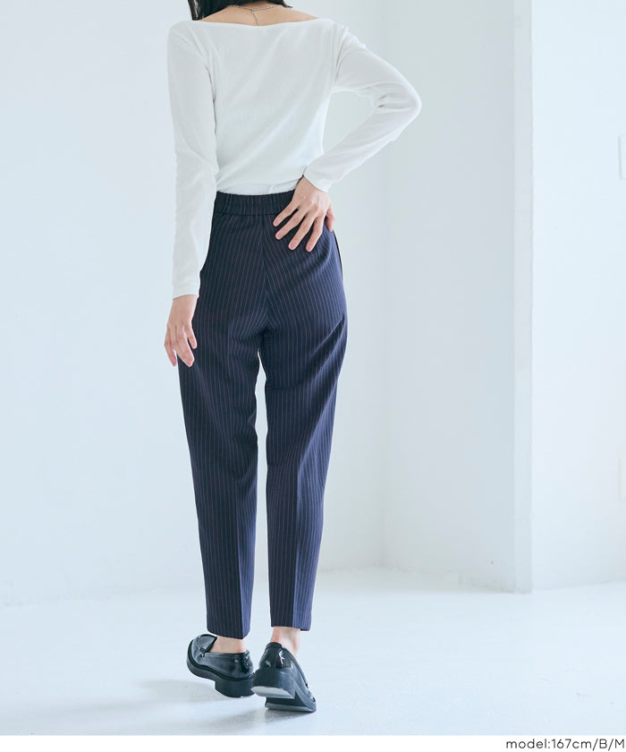 正面中線壓摺設計營造修長腿部比例,讓整體從各個角度都顯得俐落有型。後腰採用鬆緊設計,貼合度佳且穿著舒適,並具備適度彈性,活動自如、行動更輕鬆。