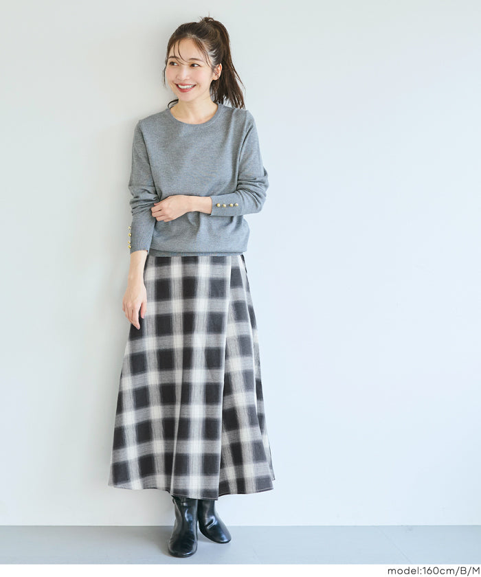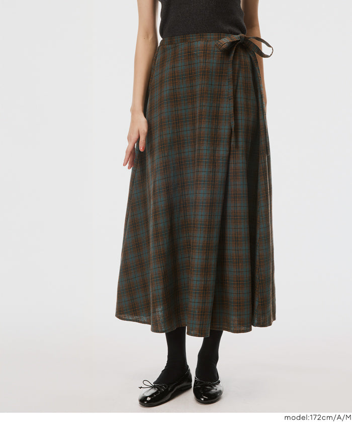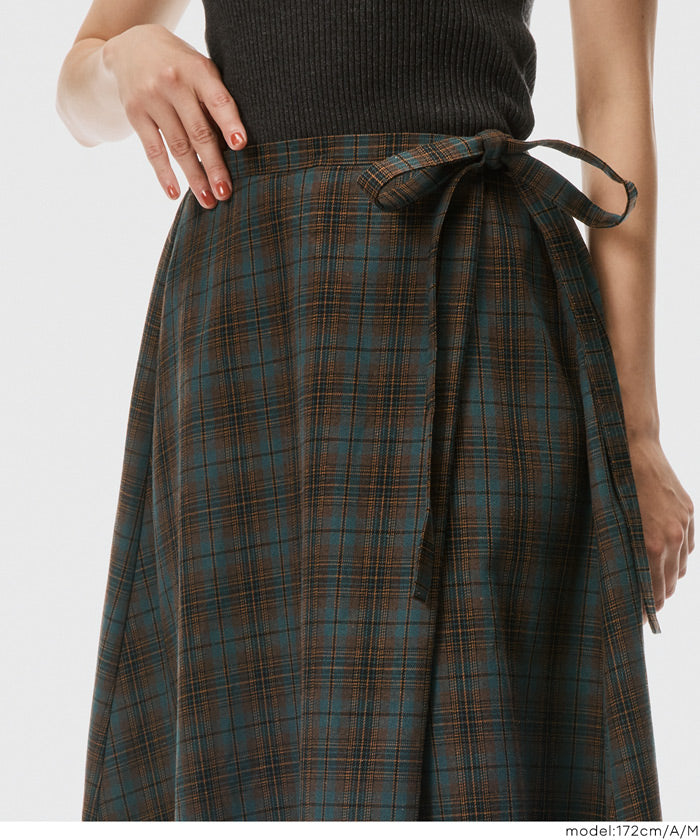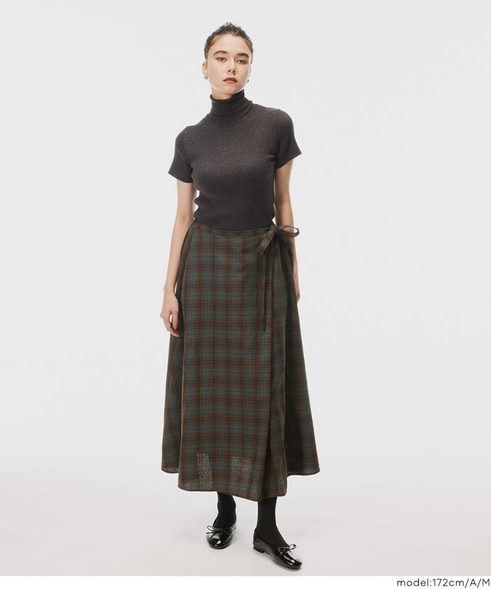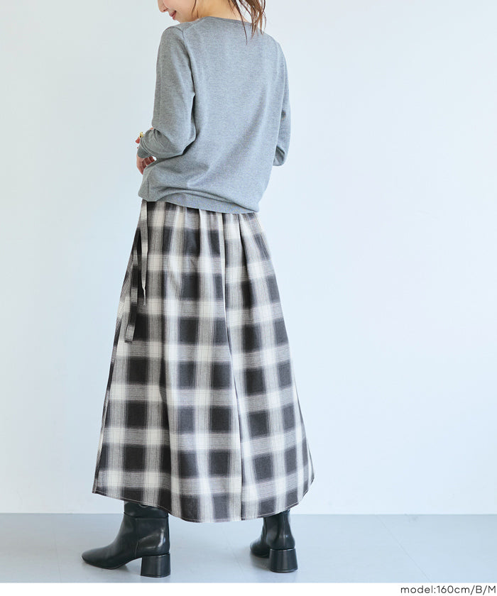 仿裹身設計搭配腰間綁帶,展現柔美氣質。垂墜感面料不會過於膨脹,呈現俐落優雅的線條◎低調不張揚的格紋圖樣,為整體穿搭增添質感與層次。